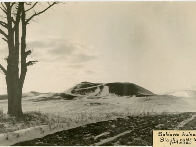 Važiuojant vieškeliu iš Šiaulių į Kairius, pervažiavus priemiestį Šimšę, keirei pusėj matytis aukštas kalnas. Jis stunkso grynam lauke tarp Šimšės ir Žuvininkų. Šis kalnas vadinamas Salduvės kalnu; kai kuriuose raštuose jis irgi esti vadinamas Saldusis, Saldus kalnas. Nuo kalno puikus reginys į apylinkes ir, ypač vasarą anksti rytą į Šiaulių…