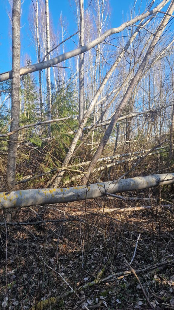 Kurį laiką pasimėgavę jos draugija išsiskyrėme ir su ja, mes patraukėme savo keliais, tiksliau nekeliais, o ji savuoju. Toliau mūsų laukė tikras įššūkis – ruožas, kuriame tiek vėjo išvartytų medžių, kad jau buvome pradėję tikėti, kad jo įveikti mus gali ir nepavykti, tačiau kažkokiu būdų šį nelemtą ruožą įveikėme ir jau visai vizdingu mišku beeidami priėjome dar vieną šlaitą, kuriuo vėl teko leistis žemyn.